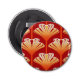 Bottle opener in a reproduction of a stylised, Art Deco lily, wallpaper pattern - a gradient of deep flame orange to white, accented with mustard gold, on a deep tangerine orange background