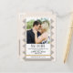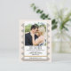 This save the date postcard features gold and black art deco horizontal lines and a customisable photo frame. The text, below the photo, allows you to add your wedding details. The backside offers customisable return address text.