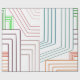 This wrapping paper has an art deco design of lines in purple, pink, orange, and blue.