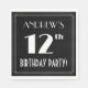 This stylish twelfth birthday party/celebration paper napkin design features an editable name, an intricate art deco style inspired number “12th”, the message “BIRTHDAY PARTY!”, and a border pattern consisting of lines. It features a black-coloured background by default, but it can be customised to a different colour, if desired. Stylish birthday themed paper napkins like these might be used at a party for somebody who is celebrating their 12th birthday. [~Z0000612]