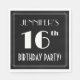 This 1920s-1930s style inspired sixteenth birthday celebration paper napkin design features a customisable name, an intricate art deco style inspired number “16th”, the message “BIRTHDAY PARTY!”, and a multi-line border. It features a black-coloured background by default, but it can be customised to a different colour, if desired. Elegant paper napkins like these might be used when hosting a birthday party for somebody in celebration of their 16th birthday. [~Z0000612]