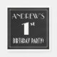 This stylish first birthday party paper napkin design features a personalised name, an intricate art deco style inspired number “1st”, the message “BIRTHDAY PARTY!”, and a multi-line border. There is a black-coloured background by default, but it can be customised to a different colour, if desired. Birthday themed paper napkins like these might be used at a party celebrating somebody’s first birthday. [~Z0000612]