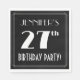 This elegant and 1920s-1930s style inspired twenty-seventh birthday party/celebration paper napkin design features an editable name, an intricate art deco style inspired number “27th”, the message “BIRTHDAY PARTY!”, and a multi-line border. The background is coloured black by default, but it can be customised to a different colour, if desired. Paper napkins like these might be used when celebrating somebody’s 27th birthday. [~Z0000612]