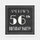 This elegant fifty-sixth birthday party/celebration paper napkin design features a customisable name, a fancy art deco look inspired number “56th”, the message “BIRTHDAY PARTY!”, and a multi-line border. There is a black-coloured background by default, but it can be customised to a different colour, if desired. Luxurious birthday themed paper napkins like these might be used at a birthday party celebrating somebody’s fifty sixth birthday. [~Z0000612]