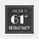 This elegant and Roaring Twenties inspired sixty-first birthday party/celebration paper napkin design features a custom name, an intricate art deco look inspired number “61st”, the message “BIRTHDAY PARTY!”, and a border pattern consisting of lines. There is a black-coloured background by default, but it can be customised to a different colour, if desired. Stylish birthday themed paper napkins like these might be used at a party celebrating somebody’s sixty first birthday. [~Z0000612]