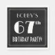 This 1920s/1930s style inspired sixty-seventh birthday celebration paper napkin design features a customisable name, a fancy art deco look inspired number “67th”, the message “BIRTHDAY PARTY!”, and a multi-line border. It features a black-coloured background by default, but it can be customised to a different colour, if desired. Paper napkins like these might be used when celebrating somebody’s 67th birthday. [~Z0000612]