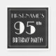 This 1920s/1930s style inspired ninety-fifth birthday party paper napkin design features an editable name, a fancy art deco style inspired number “95th”, the message “BIRTHDAY PARTY!”, and a border pattern consisting of lines. It features a black-coloured background by default, but it can be customised to a different colour, if desired. Paper napkins like these might be used at a party for somebody who is celebrating their ninety fifth birthday. [~Z0000612]