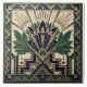This exquisite ceramic tile showcases a stunning Art Deco design, featuring a stylized lotus floral motif in deep navy blue and lush green, accented with opulent gold details. The geometric patterns that surround the central floral element add a touch of sophisticated elegance, reminiscent of the roaring twenties. Perfect for adding a vintage flair to any space, this tile brings a timeless charm and a touch of luxury to your home decor, whether used as a backsplash, accent piece, or wall art. Its intricate details and rich color palette make it a true statement piece.