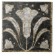 Art Deco marble tile stylised floral ornament with bluebells. Imitation marble tiles with gold outline