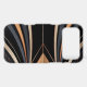 This abstract Art Deco design exudes luxury and sophistication with its sweeping metallic arcs in gold, copper, and grey against a deep black background. Symmetrical curves converge towards a central focal point, framed by sharp angular lines and vertical patterns, evoking glamour and retro elegance. Perfect for elevating home decor, office art, and stylish accessories with a timeless, opulent aesthetic.