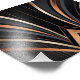 This abstract Art Deco design exudes luxury and sophistication with its sweeping metallic arcs in gold, copper, and grey against a deep black background. Symmetrical curves converge towards a central focal point, framed by sharp angular lines and vertical patterns, evoking glamour and retro elegance. Perfect for elevating home decor, office art, and stylish accessories with a timeless, opulent aesthetic.