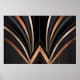 This abstract Art Deco design exudes luxury and sophistication with its sweeping metallic arcs in gold, copper, and grey against a deep black background. Symmetrical curves converge towards a central focal point, framed by sharp angular lines and vertical patterns, evoking glamour and retro elegance. Perfect for elevating home decor, office art, and stylish accessories with a timeless, opulent aesthetic.