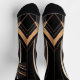 This abstract Art Deco design exudes luxury and sophistication with its sweeping metallic arcs in gold, copper, and grey against a deep black background. Symmetrical curves converge towards a central focal point, framed by sharp angular lines and vertical patterns, evoking glamour and retro elegance. Perfect for elevating home decor, office art, and stylish accessories with a timeless, opulent aesthetic.
