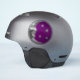 Sticker in a classic Art Deco Moon and Stars design in brushed silver with an enamel look, deep amethyst purple background