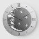 Classic Art Deco moon and stars design clock in brushed silver, with a haematite stone / grey enamel look background
