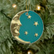 Art Deco Moon and Stars - Teal and Gold Ceramic Tree Decoration
