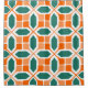 This shower curtain has an art deco design of hexagons, pentagons, squares, diagonal lines that look like a mosaic.