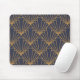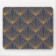 This mouse pad has art deco design of diamonds and triangles in gold on a field of blue.