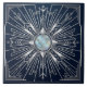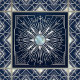 Embrace the sophisticated allure of the Art Deco era with this stunning nautical-themed ceramic tile. The design features a radiant sunburst emanating from a mother-of-pearl-like centre, intricately detailed with silver lines on a deep navy blue background. Subtle nautical elements like anchors and waves are artfully woven into the geometric pattern, adding a unique maritime touch. This tile is perfect for adding a statement piece to any room, evoking a sense of timeless elegance and coastal charm.