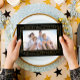 Deco inspired photo frame with large placement for the year and 4 photo layout on back. Also available with blank back layout and add your own photos or greeting.