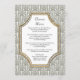 Wedding Reception Formal Dinner Menu Card. COLOR PALETTE: grey, white and gold metallic look DESIGN COLLECTION: Modern vintage Art Deco style with graphic created faux "gold" look frame and border that contains a triple monogram in the centre. Simple, elegant and beautiful shell scroll swirl pattern is a contemporary twist on the classic style. Graphically designed by Audrey Jeanne Roberts inspired by the 1920s, Great Gatsby era of elegance and sophistication. There is a wide range of colours available.