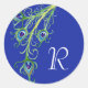 Art Deco Nouveau Style Peacock Feathers Swirl Classic Round Sticker