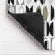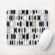 This mouse pad has an art deco design made of ovals and half ovals in black, white, and shades of grey.