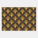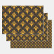 Art Deco Pattern 02 - Vivid Gamboge on Deco Black Wrapping Paper Sheet