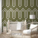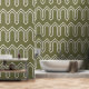 Art Deco Pattern 05 - White on Camouflage Green Wallpaper
