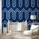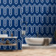 Art Deco Pattern 05 - White on Dark Azure Wallpaper