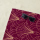 Art Deco pattern with gold geometric fan motifs on a maroon background, creating an elegant, symmetrical design with vintage sophistication.