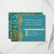 Deep teal peacock blue version matching RSVP Response Card. This wedding collection was inspired by Old Hollywood and her glam era. A classic, beautiful swirling scroll flourish etchings in rich teal and aqua are part of a collage background that sets off the lone peacock who looks back over his shoulder to the invitation text. On the reverse side a simple, solid black colour - you may select any colour you wish from the background colour menu. A traditional text layout for your invite wording and information completes this vintage retro design. A gorgeous, unique and pretty design for Indian weddings, and the most discriminating bride.