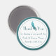 A custom Wedding favour "Thank You" magnet in teal and oracle greens and white with a period Art Deco era peacock or peafowl emblem. A very simple yet bold and sophisticated design. Part of an integrated range by Truly_Uniquely.
