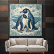 Art Deco Penguin Ice Bird Couple Snow Ocean Floral Tile