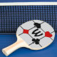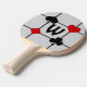 This ping pong paddle features an Art Deco inspired original design w/a card playing theme composed of bright red & black card suit symbols (diamond, club, heart & spade) centred where the black thick & thin horizontal & vertical lines of a grid meet, w/a large custom text field for your monogram in the centre.