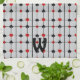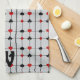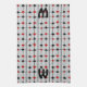 This kitchen towel features an Art Deco inspired original design w/a card playing theme composed of bright red & black card suit symbols (diamond, club, heart & spade) centred where the black thick & thin horizontal & vertical lines of a grid meet, w/a large custom text field for your monogram in the centre.