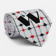 This personalized tie features an Art Deco inspired original design w/a card playing theme composed of bright red & black card suit symbols (diamond, club, heart & spade) centered where the black thick & thin horizontal & vertical lines of a grid meet, w/a large custom text field for your monogram in the center.