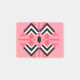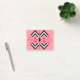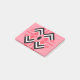 These Post-It notes have an art deco quilt-inspired design of diamond shapes in black, white, and pink on a field of watermelon.