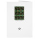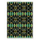 An attractive abstract geometric patterned design in gold, white green and fiery copper red on a black background. The shapes are perhaps reminiscent of 1930s Art Deco Radios and broadcasting equipment with crystal like shapes which was of course the means of early radio broadcasting , Card is pale yellow inside (customisable) and has been left blank for your message or custom greeting.