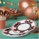 This fun paper plate features Leslie Sigal Javorek's original Art Deco inspired design: On a background of white w/gentle shading enhancing depth are several crisp black and white borders, plus 4 groups of 3 overlapping shapes, each group representing one of iconic symbols of playing card suits (diamond, club, heart & spade). Lastly, is a custom field for your monogram!