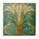 Art Deco Retro Gold Turquoise Trumpet Flower Tile