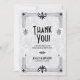 You can personalise the text on this roaring 20s (twenties) art deco frame ivory (cream) and black ritzy, swanky and glamourous wedding flat thank you card. The design features a black art deco frame on ivory or cream felt paper with a floral damask style pattern overlay in the background. To change the text, use the personalise options. Or, for more extensive changes (font, font size, font colour, text placement), choose customise it. This is a great flat wedding thank you card for a ritzy 1920s (20's, 20s, 1920's, twenties) retro themed (speakeasy) wedding. A great pop culture party idea. This was the time of prohibition, gangsters, speakeasy parties, jazz music, and flapper girls.