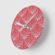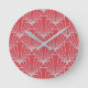 This clock has an Art Deco design of diamonds and triangles in silver on a field of burgundy.