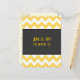 This simple art deco styled save the date postcard features a yellow and creme chevron pattern with a dark grey background. It simply features the date and city/state on the front of the card with a vintage postcard back.