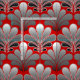 Art Deco Shell Pattern, Silver Grey / Grey and Red Fabric