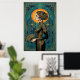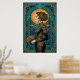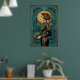 Art Deco Side Profile Dancer Gold Teal Fan Poster