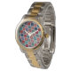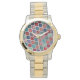 This watch has an art deco design of squares made from overlapping angles in retro shades of blue and pink.