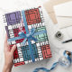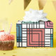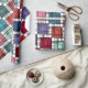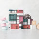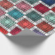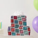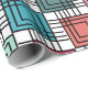 This wrapping paper has an art deco design of squares made from overlapping angles in retro shades of blue and pink.