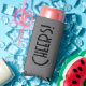 Decorate your space with this solid black typography design lettering featuring CHEERS in all capital letters on a solid grey background. Choose your style of coaster shape to further personalise your beverages!