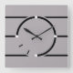 A very modern looking square clock in gray with black lines in the Art Deco style.